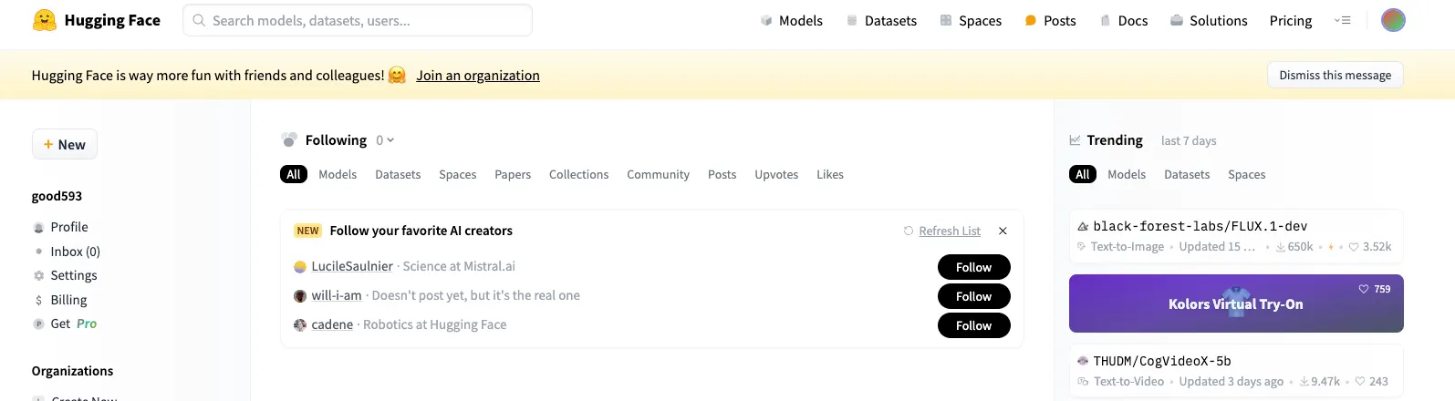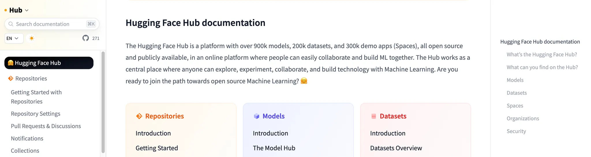 (2024년 10월 기준) 120k 이상의 모델, 20k의 데이터셋, 그리고 50k의 데모 앱(Spaces)을 포함하는 플랫폼