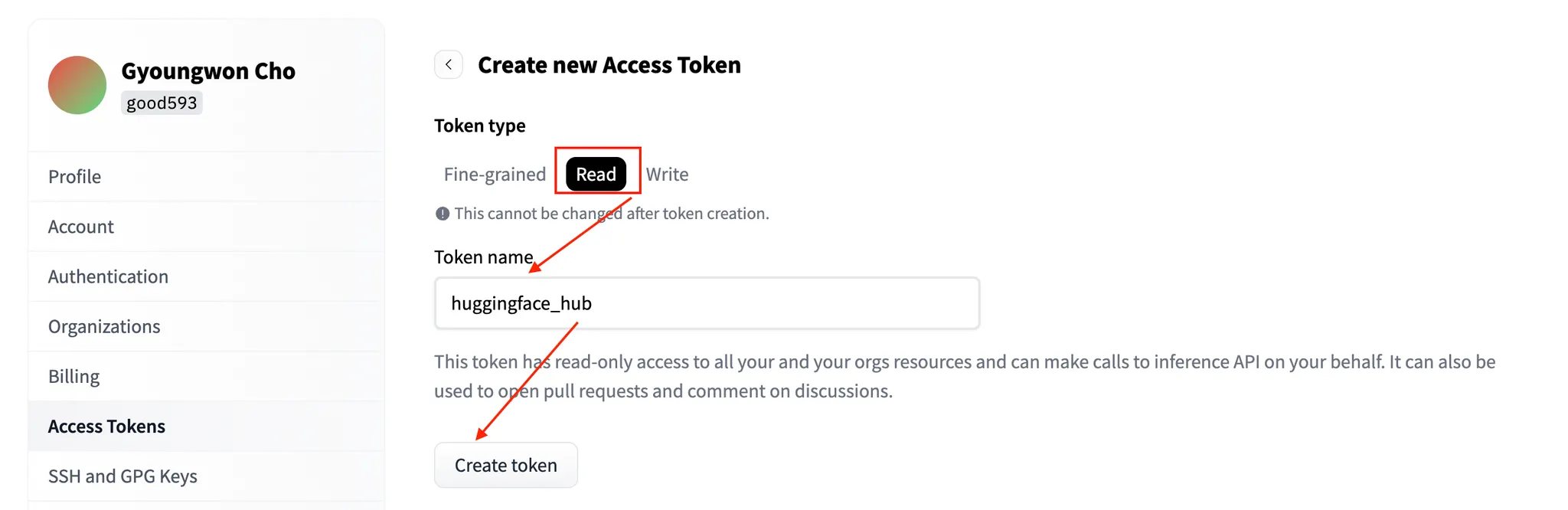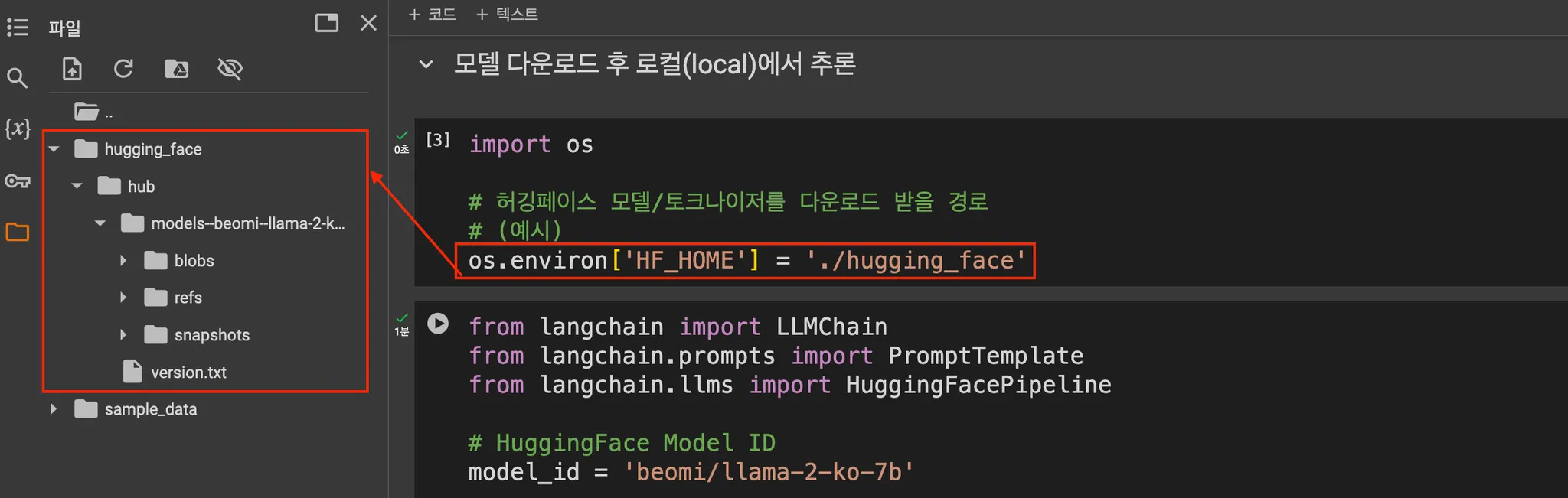 허깅페이스 서버에서 선택된 모델로 추론하고, 이에 대한 답변을 반환받는 방식