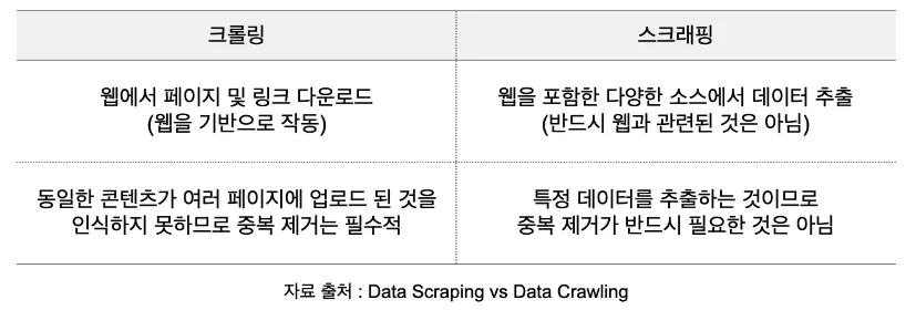 웹페이지 탐색 후 원하는 정보 추출(Web scraping)하여 저장하는 것