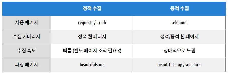html 전체를 받아와서 beautifulsoup로 파싱하면 페이지에서 하나하나 가져오는 것보다 수집 속도가 빠르다.