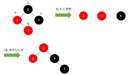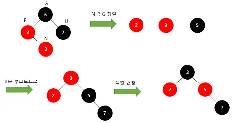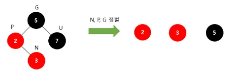 새로운 노드(N), 부모 노드(P), 조상 노드(G)를 오름차순으로 정렬