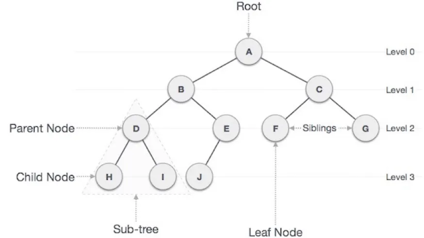 단말 노드(leaf node): 자식이 없는 노드, ‘말단 노드’ 또는 ‘잎 노드’라고도 부른다.